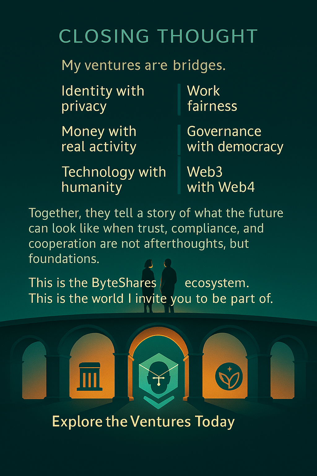 Together, they tell a story of what the future can look like when trust, compliance, and cooperation are foundations. This is the ByteShares ecosystem. This is the world I invite you to be part of.